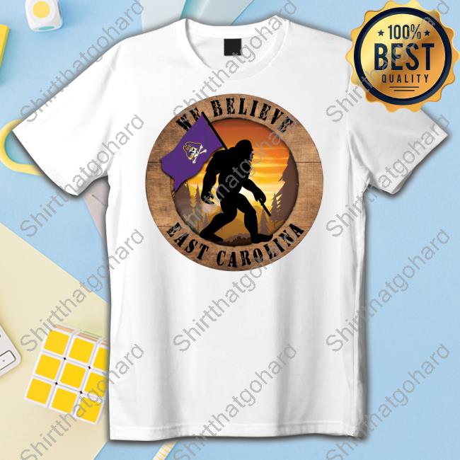 Official Ecu Pirates 12 We Believe East Carolina Bigfoot Circle Sign T Shirt